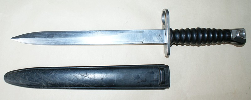 (2640)- US M-1 Garand bayonet, plastic grips, made by Union Cutlery, comes with a Danish scabbard, Good to VG cond., $295.00 Can shipping.