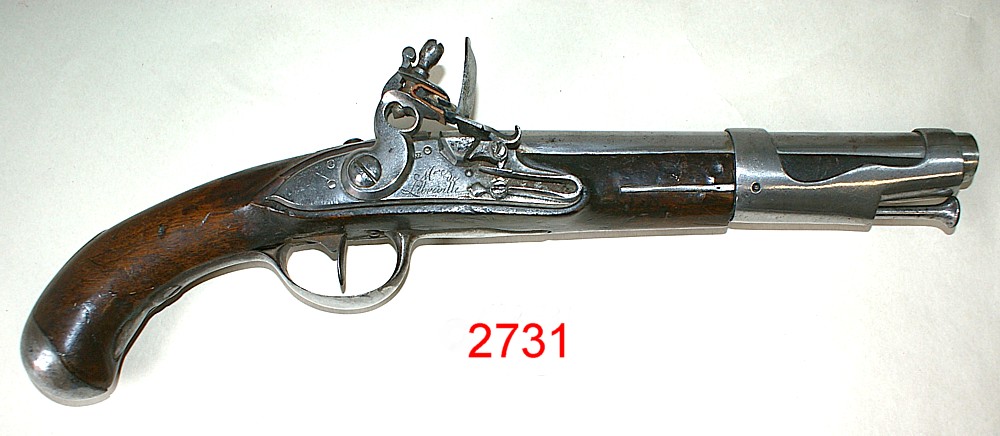 (2731)- French Model 1733/66 Flintlock Pistol, cal. .69, Manufactured by Libreville Arsenal (Charlesville) during the French Fevolution, VG cond., $ 2,500.00 Can Firearms sold only to Canadian Buyers.