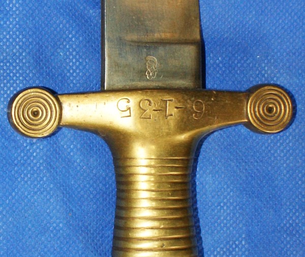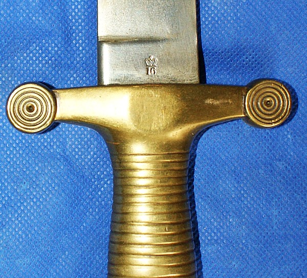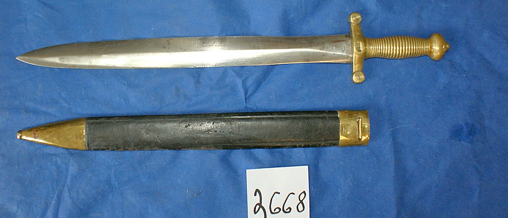 (2668)- French Model 1831 Artillery Sword, Brass grips, Made by Talabot in Paris, comes with leather scabbard, VG cond., $500.00 Can + shipping.