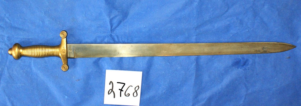 (2768)- German made Artillery Sword, Brass grips, Made by Weyersberg Kirschbaum & Cie AG (WKC) in Solingen, no scabbard. Might be British issue. VG cond., $395.00 Can + shipping. (View 1), (View 2).